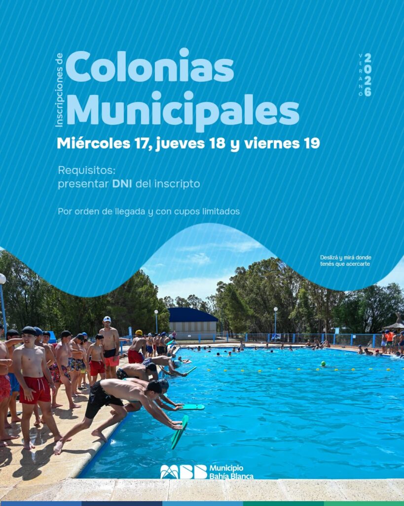 Los días miércoles 17, jueves 18 y viernes 19, se realizarán las inscripciones para las Colonias Municipales de Verano, por orden de llegada y con cupos limitados.