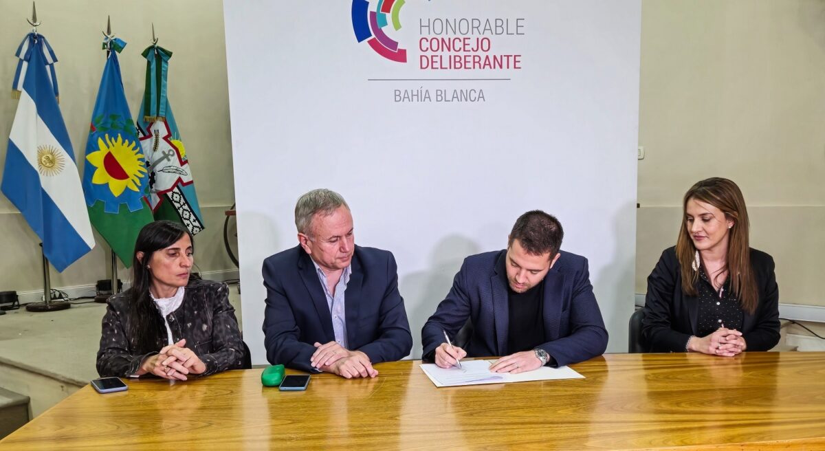 Hoy por la mañana, tuvo lugar en la Sala de Sarmiento 12 la firma de un convenio de colaboración técnica entre el Honorable Concejo Deliberante y el Colegio de Ingenieros de Bahía Blanca.